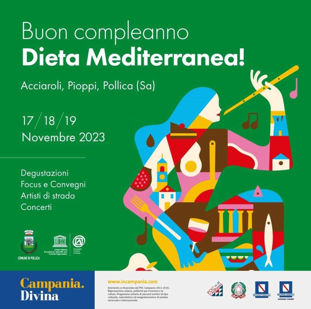 Sarà Pollica ad ospitare le attività di celebrazione del XIII anniversario dell’iscrizione della Dieta Mediterranea nella lista del Patrimonio Culturale Immateriale dell’Umanità approvata il 16/17 Novembre 2010 a Nairobi in Kenya dal Comitato Intergovernativo della Convenzione Unesco. Una vera e propria festa di compleanno, prevista nei giorni 17,18 e 19 novembre, per celebrare e condividere con la Comunità il valore patrimoniale dello stile di vita cilentano.