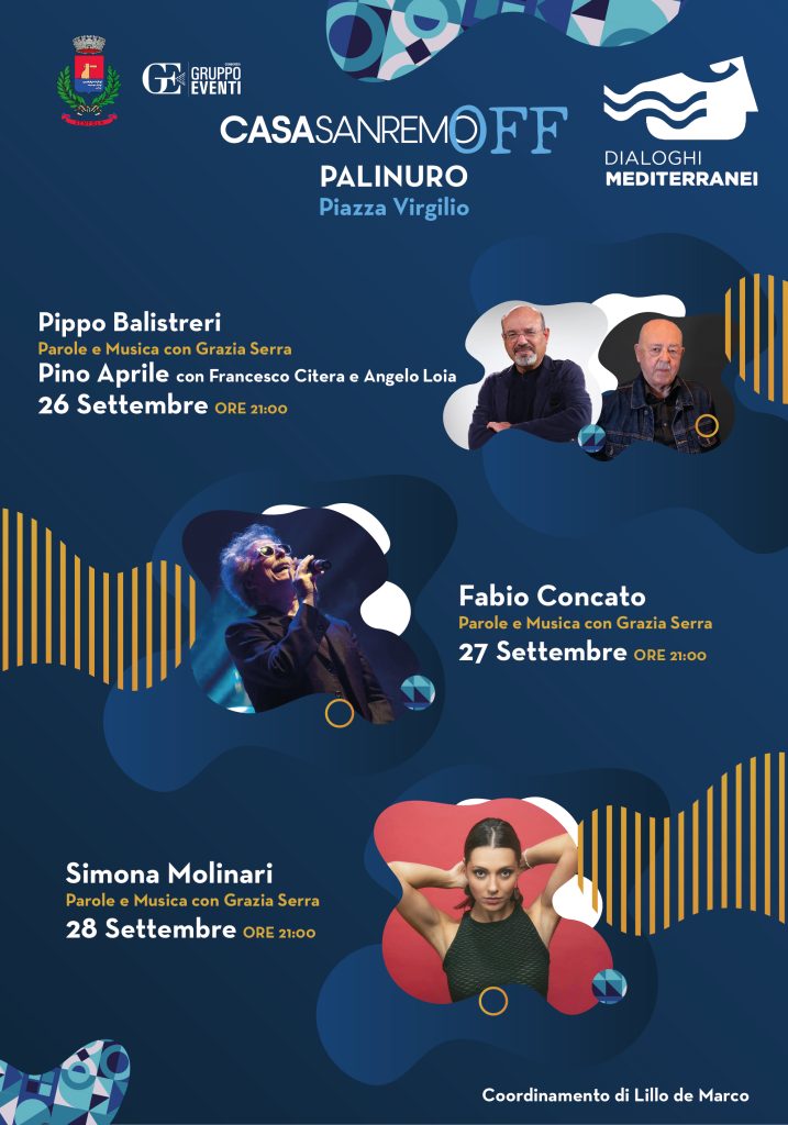 “Con tre appuntamenti importanti nel contesto elegante del format “Casa Sanremo off” chiuderemo Dialoghi Mediterranei 2024. Abbiamo voluto fortemente questa collaborazione per dare un segnale forte di vitalità al nostro territorio. Eventi di qualità così alta non solo sono di forte richiamo in questo periodo dell’ anno ma senza dubbio ci consentono di promuovere Palinuro attraverso il forte impatto sui social media e sulla stampa.”