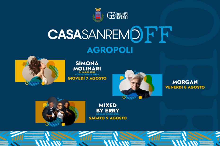 Dal 7 al 9 agosto 2025, appuntamento con Simona Molinari, Morgan e i protagonisti di… Leggi tutto »Casa Sanremo OFF ad Agropoli: tre serate di grande musica e cultura