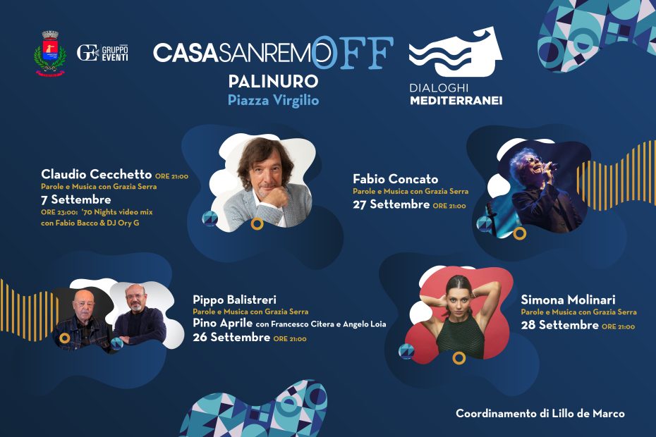 CASA SANREMO OFF A PALINURO |7, 26, 27 E28 SETTEMBRE 2024 DIALOGHI MEDITERRANEI: NELLA SPLENDIDA… Leggi tutto »Casa Sanremo OFF a Palinuro