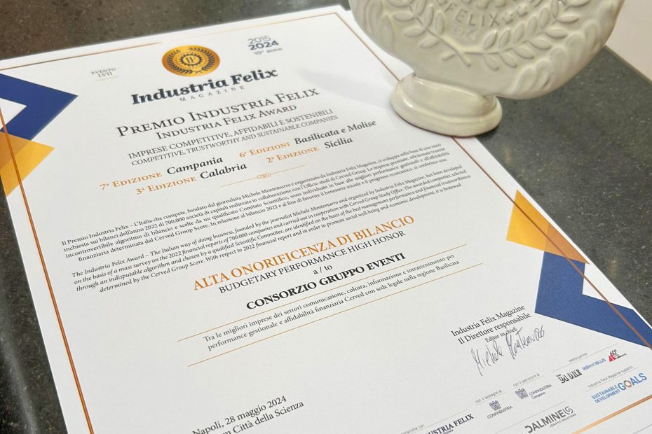 Premio Industria Felix – l’Italia che competePremiato il Consorzio Gruppo Eventi Napoli, 28 maggio 2024… Leggi tutto »Premio Industria Felix – l’Italia che compete